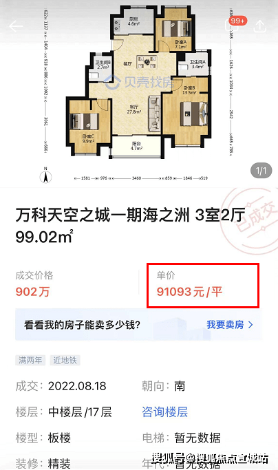万科天空之城新房入市时仅约6w元/㎡!当前二手成交价基本都在8w+元/㎡!甚至还有突破了9w元/㎡的成交案例存在!