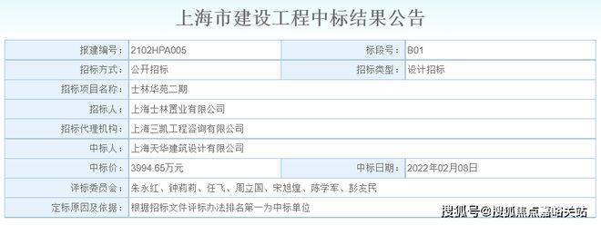 2022年2月8日,上海天华建筑设计有限公司以3994.65万元中标士林华苑二期地块设计项目!