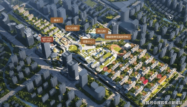 还有九年一贯制的学校及层层退台设计的邻里中心。前者将由保俶塔申花实验学校领办(期房不承诺学区)。后者则包含了泳池、农贸市场、文化活动中心、剧场、健身中心、社区服务中心等功能。