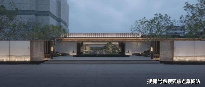 保利姑苏瑧悦取法苏州园林的廊桥框景线条美学,演绎为框体线条造型和简洁舒展的立面肌理。在地取材,运用质朴拙雅的御窑金砖,提取粉墙黛瓦的江南之色,定制兼具东方韵味和现代质感的蟒水纹。
