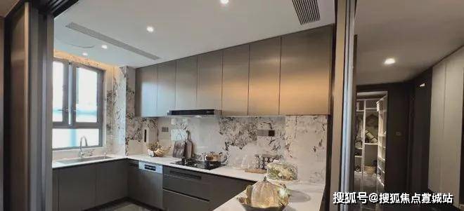 U型厨房,博世灶具+蒸烤箱+洗碗机+冰箱+抽油烟机,弗兰卡的水槽、摩恩的水龙头,还贴心地设置了贝克巴斯垃圾处理器,非常人性化。