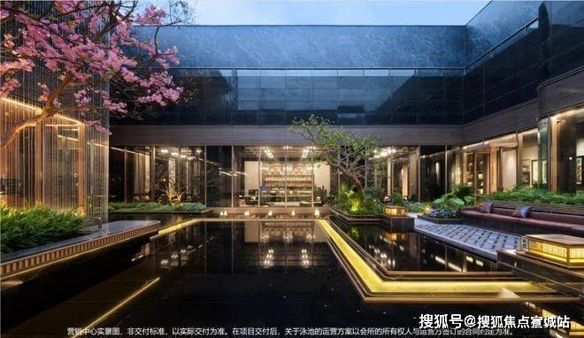 建筑面积约1500m²恒温泳池会所及落差达约10米的水幕下沉式园林的打造,在奢石、臻材等元素的空间应用中,让显贵世家的社交场景,相映于粼粼碧波的柔光之中,于方寸之间游离世外。