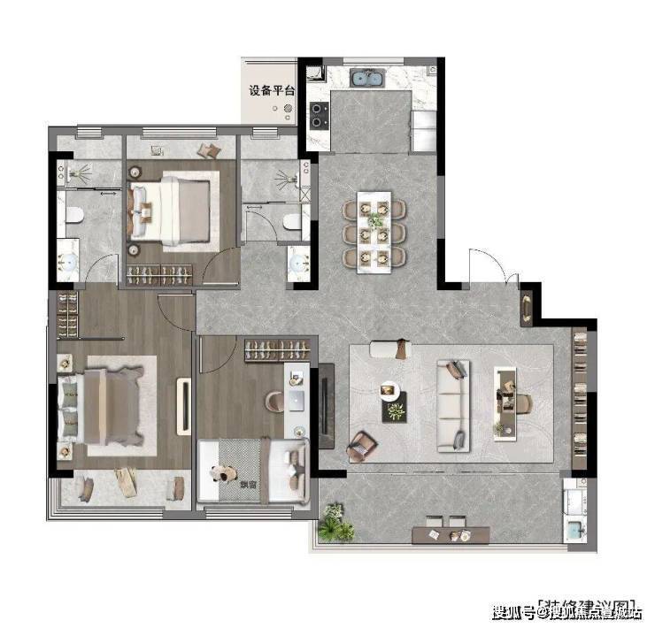 三房两厅两卫·约6.8米双阳台·U型厨房·全能主卧套房
