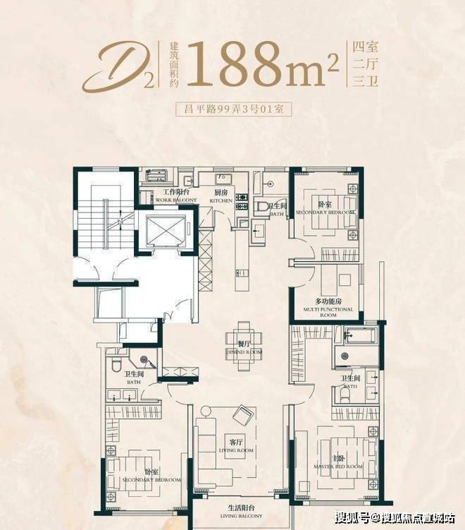 建面约176㎡4房2厅2卫户型:
