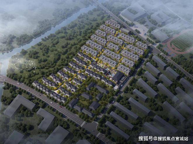 项目定位为高端排屋及叠排社区,建筑设计以新宋风为特色,融入超山宋梅古韵的历史人文底蕴;整体布局以中央山水景观轴为骨架,营造“一轴一带八景十巷”的多进式园林体验。并且该地块西面为超山名胜风景区,西北面有丁山湖和塘栖古镇景区,整体山水资源丰富,呈现“蓝绿相织,山水相连”格局。