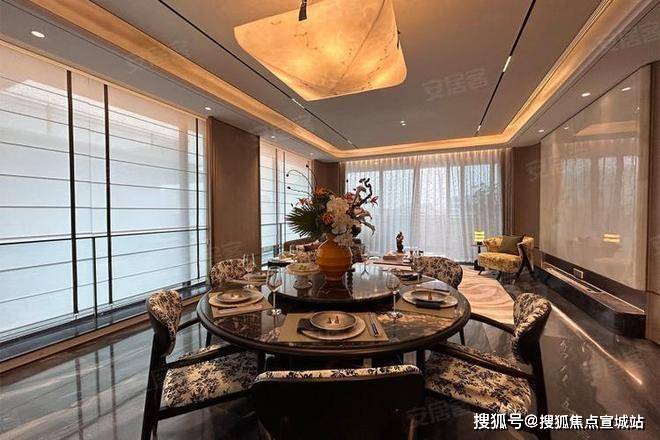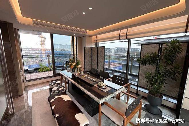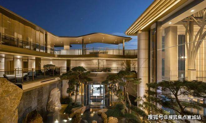 建筑立面:古今交融的诗意表达:外立面以香槟金铝板为基调,搭配蓝眼睛石材与玻璃幕墙,融合传统歇山重檐、纳福悬鱼等元素,既保留宋式建筑的对称美学,又赋予现代建筑的轻盈通透。合院组团采用三面庭院设计,L型景观面与环绕式檐廊,将超山梅影、丁山湖光引入每一扇窗景!