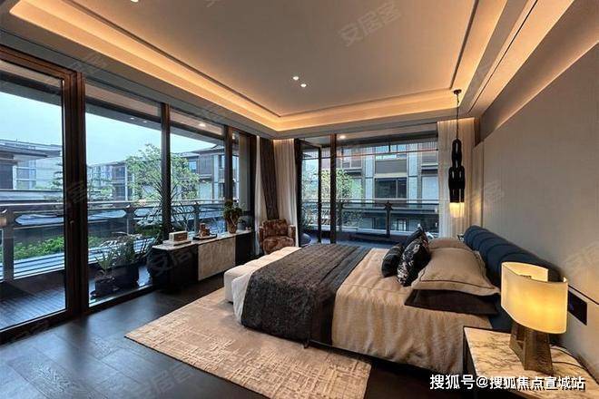 中间套300㎡地上三层双主卧套房设计,每间卧室连通露台或庭院;L型景观面实现“移步异景”。边套340㎡顶层阳光房与私家电梯入户,主卧独占整层,躺瞰超山梅花盛放,地下室可拓展为私人艺术馆。