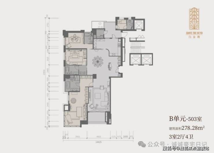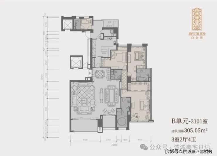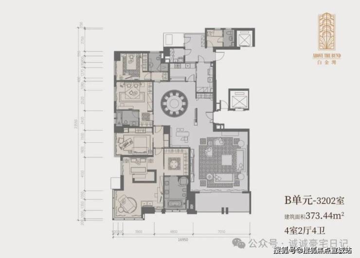 户型面积:住宅总高 35 层,3-15 层为低区,建筑面积在 128-278 平方米,有 2 房和 3 房户型;16-33 层为高区,建筑面积在 278-371 平方米,有 3 房和 4 房户型;顶层为两套 482 平方米的 4 房。目前主力在售户型为建面约 278-373㎡的 3-4 房。