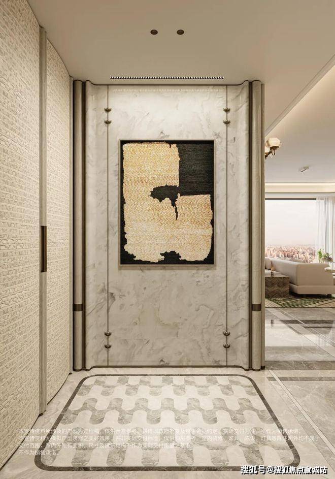 从入口玄关地面全水刀石材拼花,到主卧床头的艺术贝母马赛克,都是高难重工工艺。✅保利外滩曜售楼处电话:400-8862-334✅︎✅︎✅
