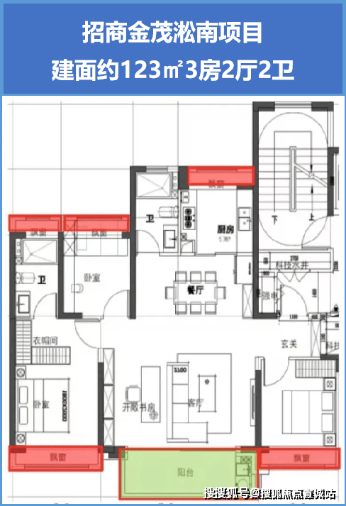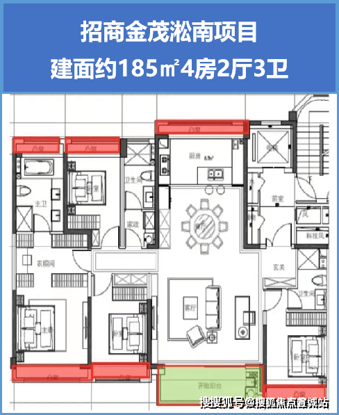 产品方面,预计将推出建面约110-185㎡3至4房产品,四种户型的飘窗与阳台空间都比较大。110㎡户型的阳台将次卧和客厅联通;123㎡是横厅设计;140㎡足足有七个飘窗空间;185㎡各个房间的空间更上一层。