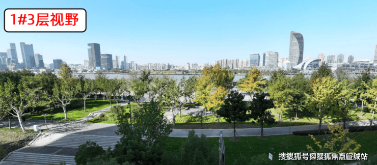 5#楼按照现场视野模拟,由于南侧1#楼的遮挡,若要纵览比较全的江景,需要20层及以上。