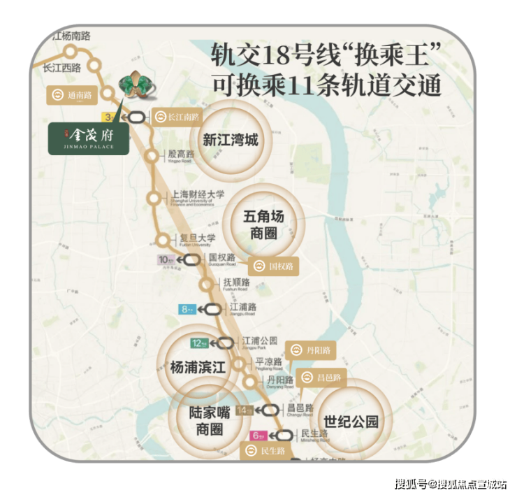 通车后,将串联上海核心资源,1站新江湾城,3站直达上海财经大学,4站畅达复旦大学,无缝换乘多达11条轨交线路,直抵无界江湾都芯生活!