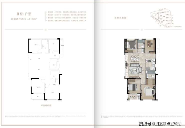 118㎡|澜悦|四房两厅两卫:约118平户型最为惊艳,全部边套设计。如今市面上的四房如果要追求尺度,基本要130平以上;小面积四房,基本是3+1房设计,数字1大多代表的是像储藏间或衣帽间这样的功能房。但湖沁宸园的118平,是完整四房格局,兼具尺度与功能性。