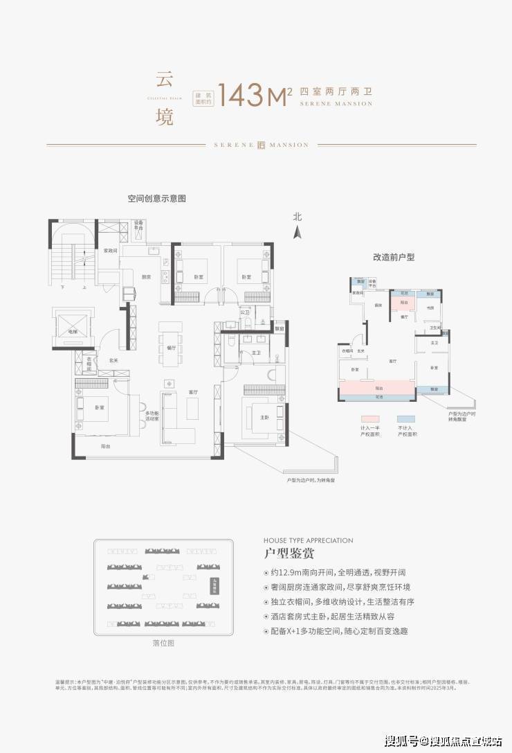 建筑面积约127-188㎡奢阔洋房,全系超100%得房率;底层大私家院落,顶层天幕星空露台,围合天地与美满。