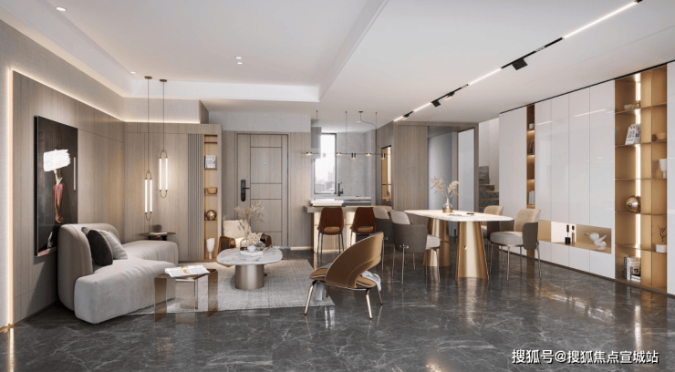 独立的入户玄关 ,出入皆有生活的仪式感,更方便做细致的收纳分区;客厅、餐厅相互独立,客厅南连宽景阳台,餐厅北连飘窗,让空间得以延展的同时,也让阳台的功能多样化;厨房就近连接餐厅,动线清晰,客餐厅通透明亮。