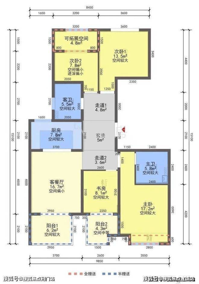 像栖霞湾166㎡的户型,单是赠送面积就有16.15㎡。三阳台设置,不仅给居住提供了更多的瞰景、休闲选择,在可打造的基础上,也留给住户更多的想象空间。