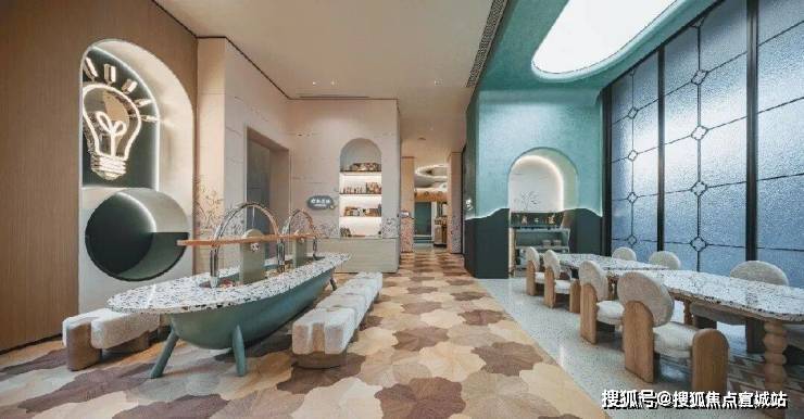 可爱的绿色小泰坦不远万里,为孩子们带来一场奇趣体验。设计师以孩子的视角,布局童梦天地,更低的桌椅、更柔软的材质、更温暖的画面,在有限的空间里回应童年无限的好奇与渴望。