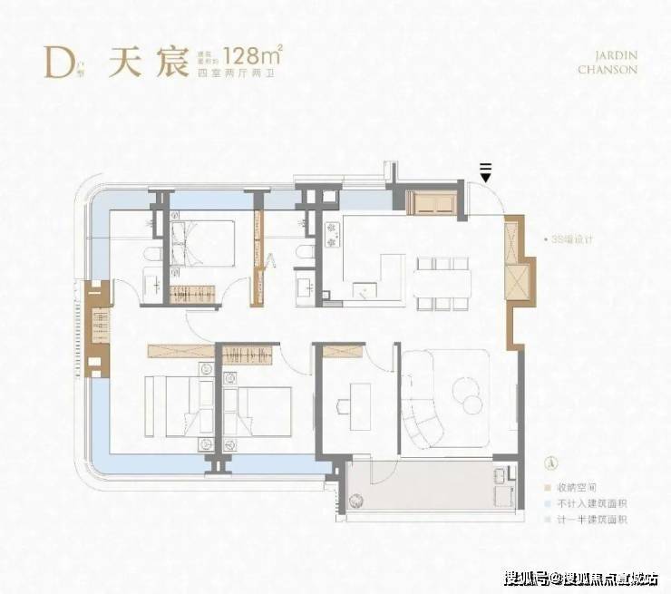 项目建面约128㎡4房同样出彩。