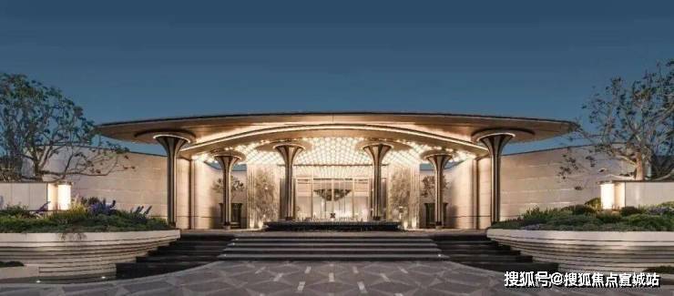 项目恢弘大气的门头,项目设计师以浮岛为灵感,将几根立柱化作悬浮的雕塑,撑起一片轻盈的仪式感。