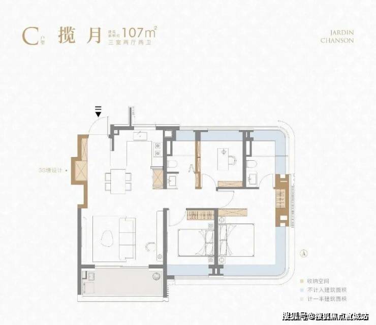 不夸张的讲,这个建面约107㎡刷新了我对百平三房的新认知,据悉该户型或将申请专利,我认为实至名归!