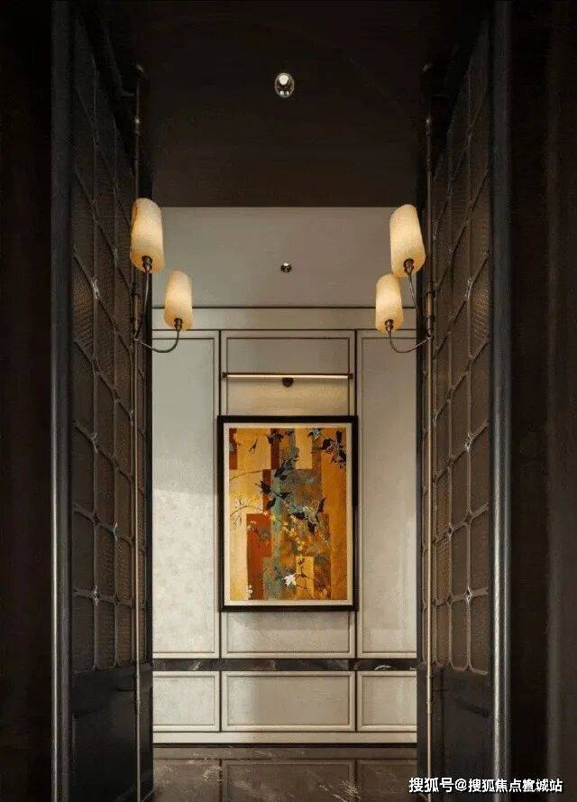 门厅,作为建筑空间的第一重呼吸,在摩登且包容的主基调上,汲取西方古典园林的轴线秩序感,同时在细节处融入了东方留白的智慧,并以黄金比例分割的线条韵律与考究材质的肌理对话,让这个过渡空间成为兼具当代美学精神与人文温度的仪式场域,让居者于此处完成从外部世界到内心居所的优雅转译。