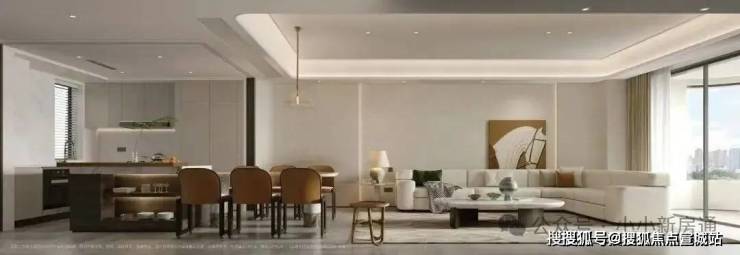 客餐厨阳台一体化,放大社交空间尺度;同时厨房可开可合,下厨时也能和家人情感互动。