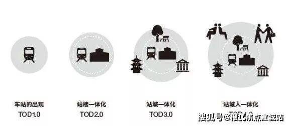 1.0版,TOD就是个车站。2.0版,车站上开始盖楼。3.0版,住宅、购物中心和公园都结合车站开发,即“站城一体化”。