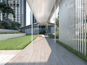 还有一种更愉悦的回家方式:刷卡进入负二层后,乘专梯到地面,穿过风雨连廊(仅MU02地块)和花园水景,施施然直达每幢楼的单元门厅。
