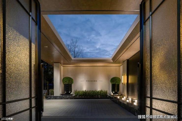 苏州姑苏#万科璞拾胥江华庭营销中心热线:400-8558-334-入口前庭是度假式生活的起点。璞拾胥江入口处的转角景墙仿佛一卷画卷,把嘈杂与喧嚣隔绝在外,营造出了尊享街区的领域氛围。第一个入口庭院引入了天光,将四方前庭打造成奢华又隐秘的酒店式入口。