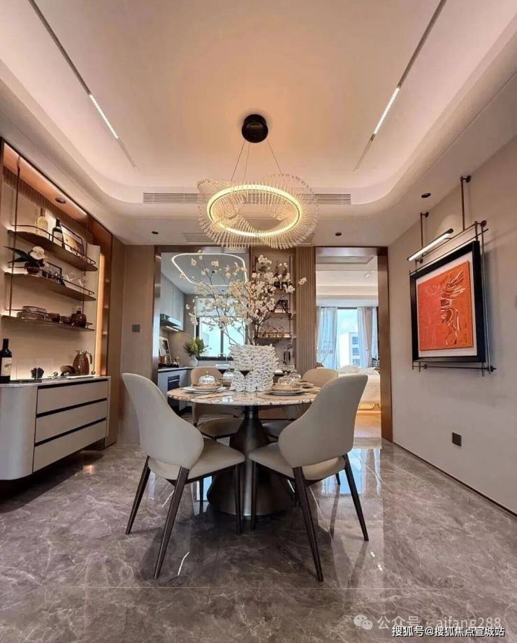 客餐厅相对独立,客厅+次卧南连约6.7米宽景阳台,餐厅北连大飘窗,层高3米,室内空间尺度瞬间体现出来;