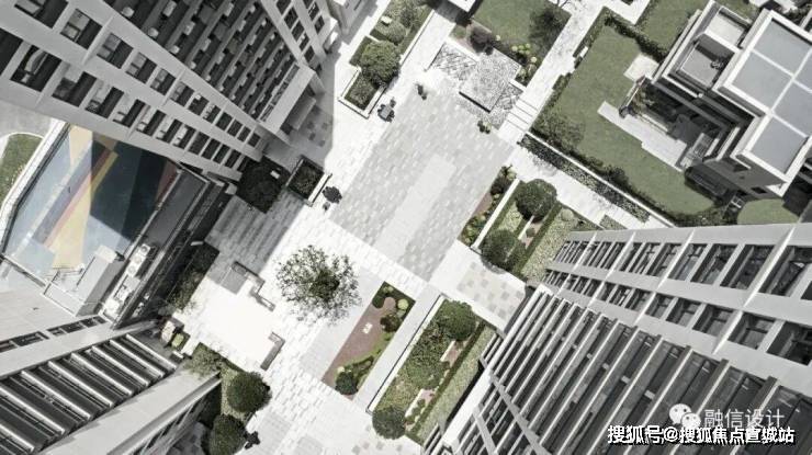 景观设计对于场地的空间划分格外别致,其灵感来源于意大利艺术家MarcoCasentini的作品“ThroughtheSky”,与其抽象派绘画的构图理念相似,场地的布局由众多正交的线条交织而成,线条与线条之间的碰撞与切割,最终定义了场地的主要元素与空间布局,在赋予整个空间以独特意义的同时,自然形成了丰富的多层次体验。