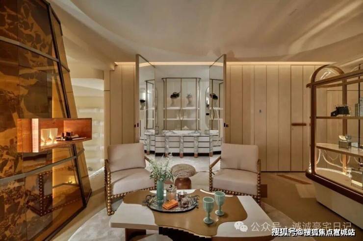 在这里,男女主人可尊享各自独立的沙龙空间,也分别配有珍宝阁和休闲区,可展示自身的爱好与收藏,可与好友相约小聚下午茶,也可享受独酌。这无疑是家中可唤醒感官的角落,让自身的品格与态度得以安放,让家空间与居者,相互滋养,相互成就。