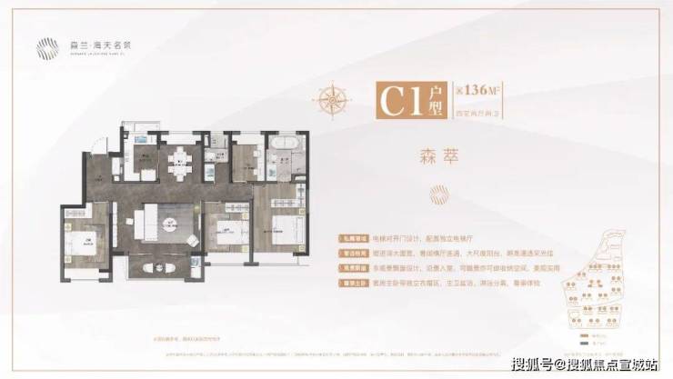 1、建面约136㎡,拥有超阔横厅的梦中情屋。短进深大面宽,奢阔横厅连通,大尺度阳台,明亮通透采光佳。