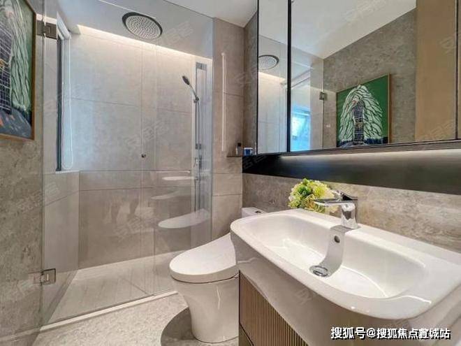 选材上也是相当精细!严选成本高昂的大规格进口瓷砖,减少墙面拼缝,呈现 顶级星级酒店卫浴的整体感,达到目前样板间的高阶精装效果~