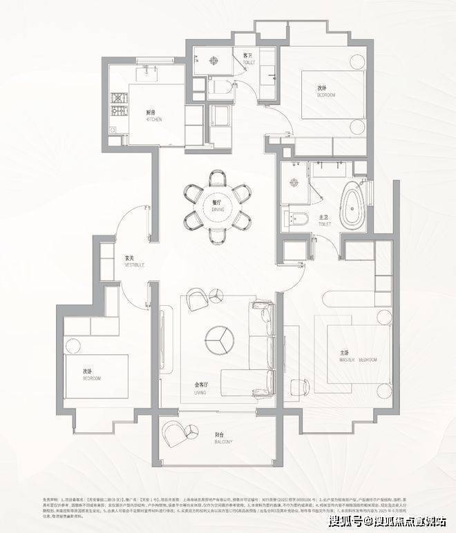 主卧大套房设计,主卫双台盆带浴缸配置,尊崇感十足!