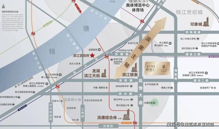 位于滨江与奥体交汇的核心板块--滨奥主轴之上,风情大道与建设二路,距离滨江核心区直线距离约1.9公里,距离奥体中心直线距离约2.5公里。本案方圆3公里范围,几乎同享滨江与奥体所有核心配套,如此得天独厚的地理位置,不仅完全满足滨江高端改善置业需求,也是目前杭州江南岸唯一一个,可同享滨奥核心资源的板块。