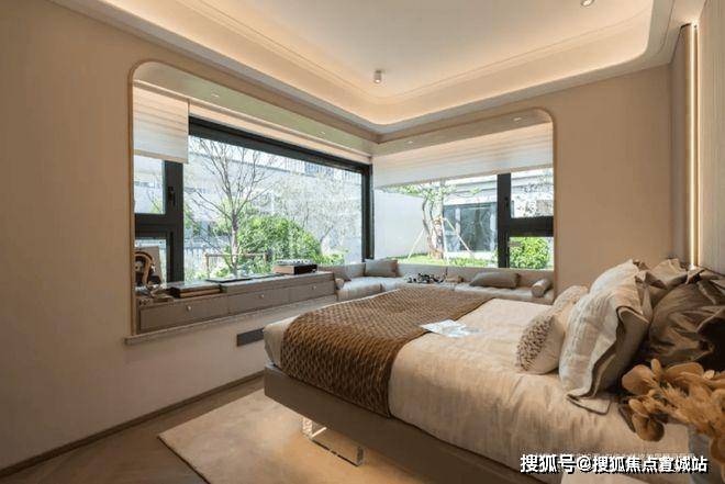 其次,边套主卧的约270°无柱转角超宽巨幕景观视界。这个景观视野和主卧采光度,实在是惊艳。