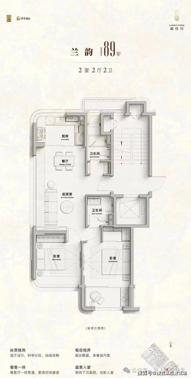 洋房:均价约 11.7 万元 /㎡,总价约 1020 万 - 2316 万元 / 套。户型方正通透,全三房或四房设计,三开间朝南,LDKB 一体化空间。