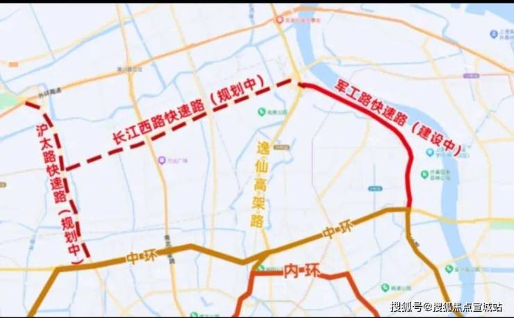 在北上海中外环间,规划有3条快速路,分别为在建中的军工路快速路,以及规划中的长江西路快速路、沪太路快速路。这3条快速路相互连接,头尾均可联通中环线。