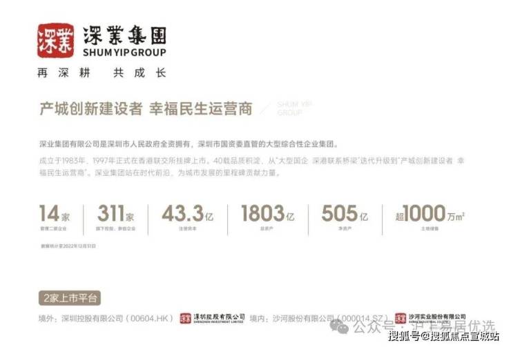 40载品质积淀,从“大型国企, 深港联系桥梁”迭代升级到“产城创新建设者,幸福民生运营商”,深业集团站在时代前沿,为城市发展的里程碑贡献力量。