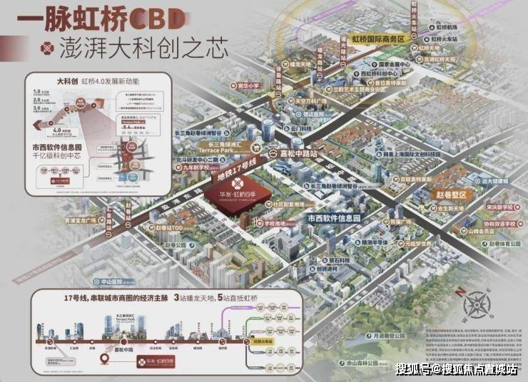 青浦区基于”一城两翼,一带三核”发展战略目标,正着力推进东翼(赵巷商业商务区+西虹桥商务区)发展为国际一流的现代服务业集聚区。并通过17号地铁线串联起三大核心节点,东起徐泾北斗产业基地,西到金泽华为研发基地,中部核心就是赵巷市西信息软件园。预期,未来这条产业带上,将会有65万高端人口导入