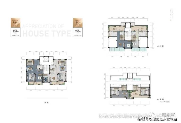 双叠排:建面约140㎡、145㎡(四室两厅三卫),建面约133㎡(三室两厅三卫)