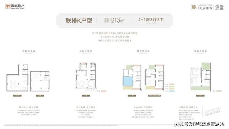 项目此次首开建面约 143-232㎡ 叠墅 +联排 户型,其中联排产品延续宋式建筑“深檐挑角”的形制,预留充足露台空间,让业主可私享“直面公园,推窗见绿”的墅居自由;