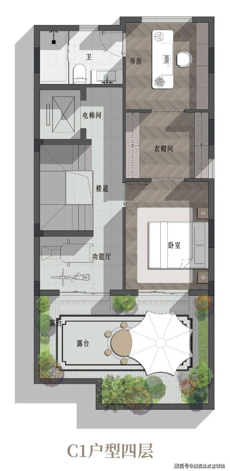 金翊·金云院想说:如果你来访我,我不在,我便让南面庭院的锦鲤与你作伴,或者请我东面墙边的金桂陪你下棋,当然,你也可以选择在北侧院子里看看我新栽的紫竹。如此三面围合的惬意院落,就在金翊·金云院建筑面积约289㎡C1户型之中。