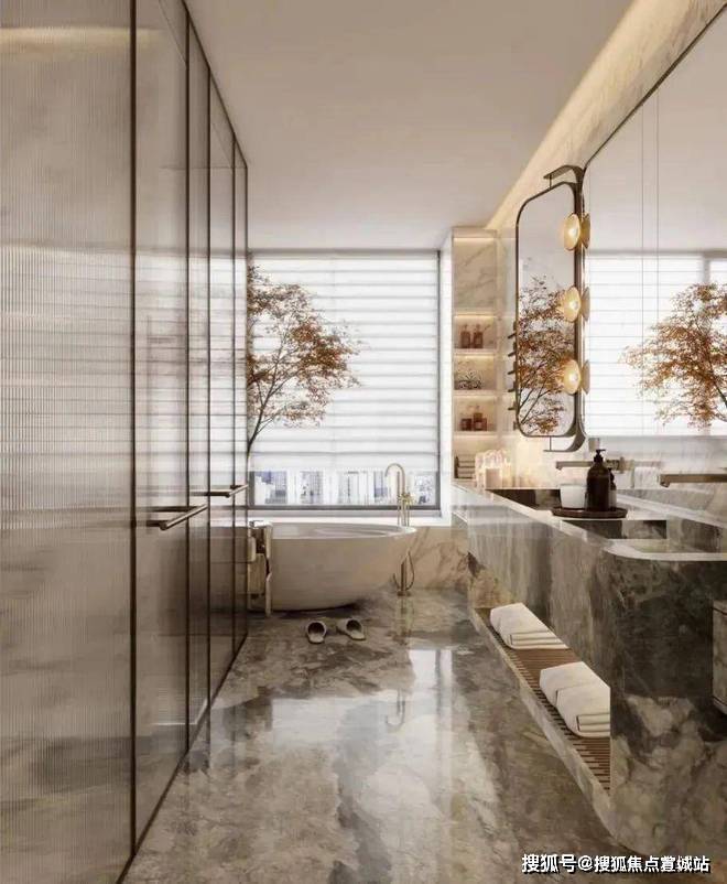 精装交付标准:国际品牌卫浴(高仪、唯宝)+中央空调+地暖