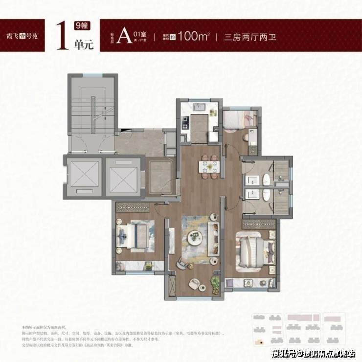 高层产品:建面约 98-122㎡三房,得房率约 78%,采用类独立电梯厅设计,无连廊 + 飞机户型实现南北通透。