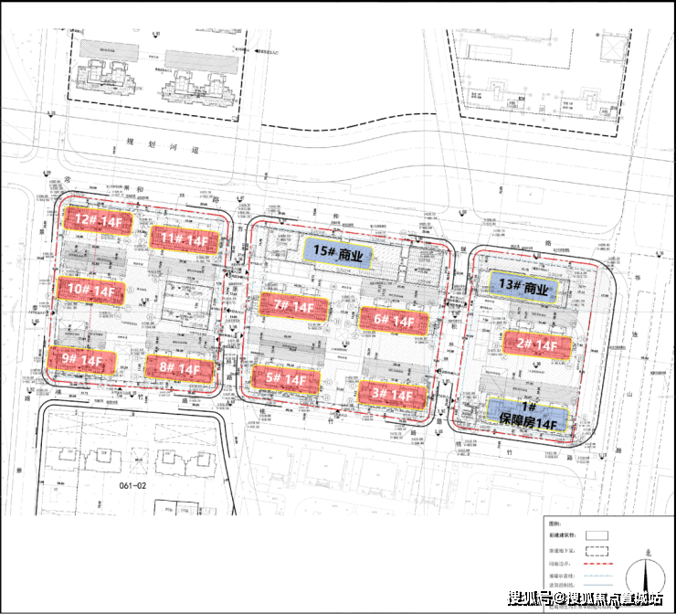 根据规划设计方案显示,项目拟建11幢14F住宅(含1幢保障房)、以及商业、配套用房等建筑。