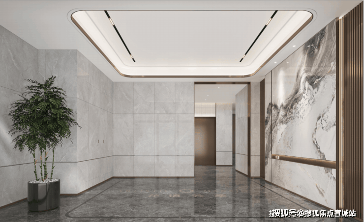 地上入户大堂,步入瞬间能感受到艺术级审美。岩板背景墙搭配灰色系地面,兼具品质感与美观性。
