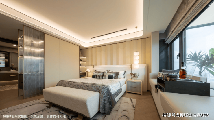 4、奢阔酒店式套房主卧,南向双套房设计的奢享感