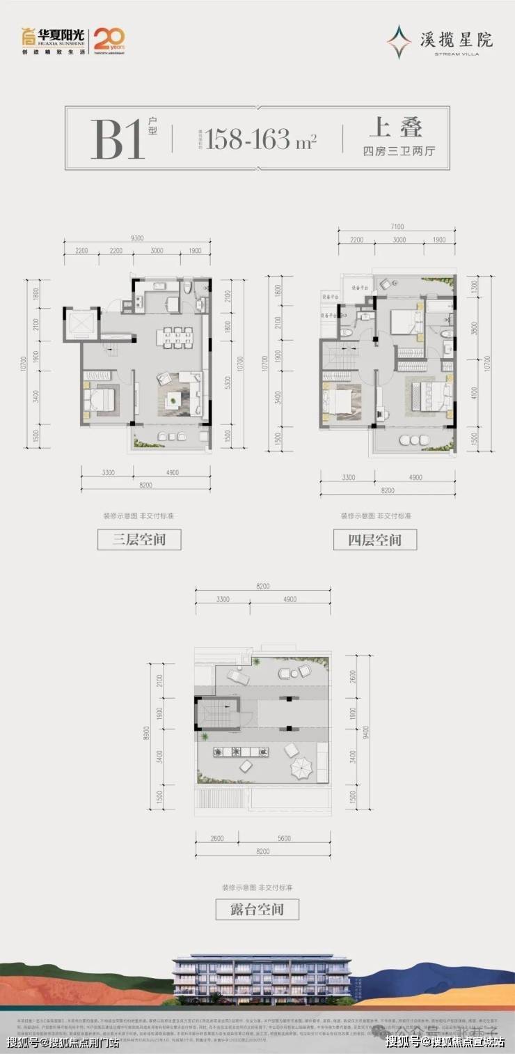 B1户型上叠:顶层景观阳台/餐客一体连厅/套房式主卧/舒奢三卫设计